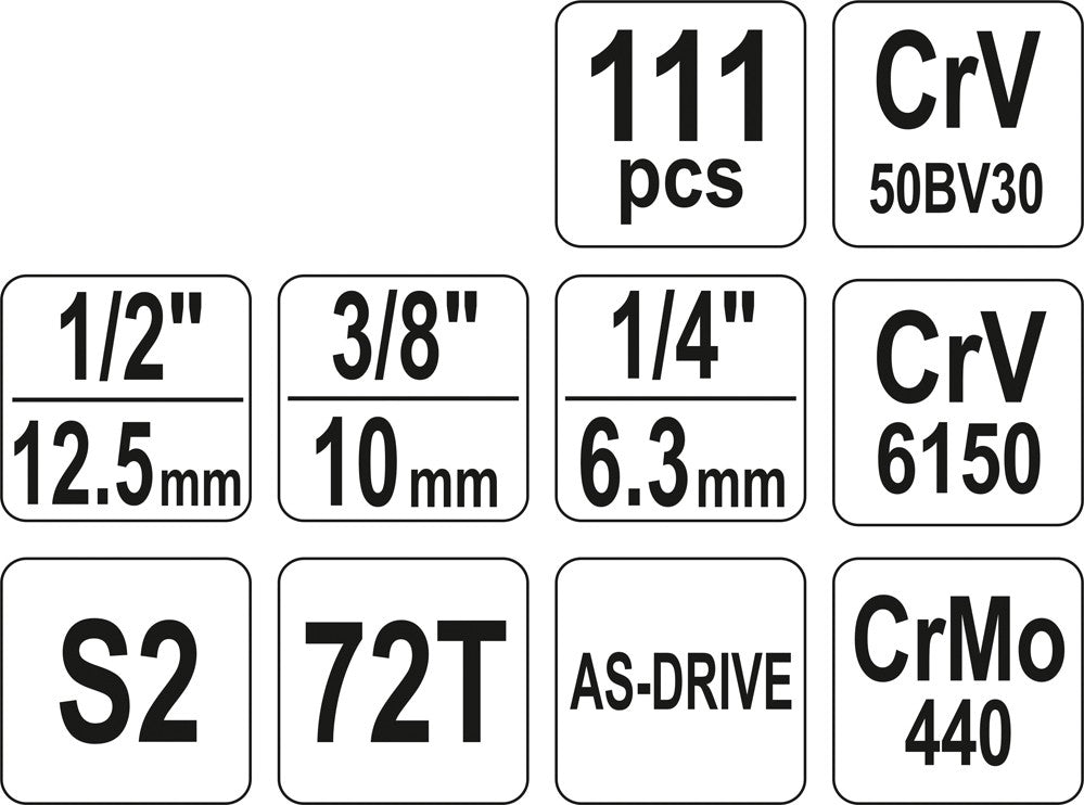 Caja de herramientas de 111 piezas profesionales que se ha desarrollado para satisfacer las necesidades de los servicios mecánicos y de automóviles especializados.